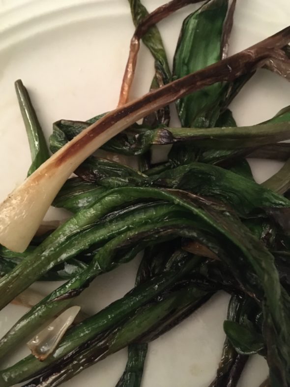 This seared ramps recipe is simplicity itself. Nothing more than fresh ramps (of course), olive oil or–better yet–bacon drippings, and sea salt.