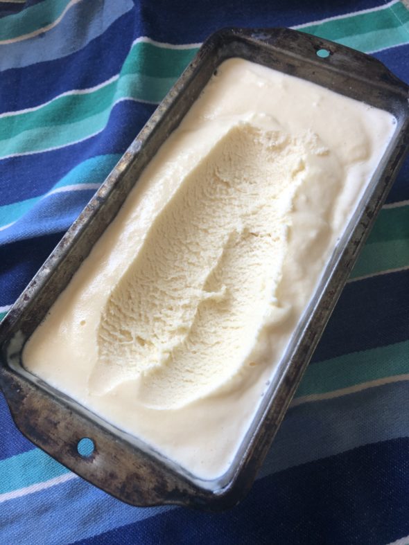 It wasn’t the hard ice cream of my childhood, the kind that makes your shoulder ache as you scoop it up. Instead it had a slight milkshake-y quality to it. But I suspect that has more to do with our freezer, which doesn’t get terribly cold. I’ve since tried it using half milk and half cream and found it to be just as lovely. A keeper, without a doubt.