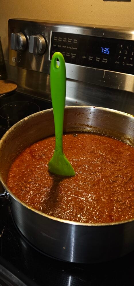 Keep the sauce at the laziest simmer until the fat separates and pools on top—that’s your sign the liquids have fully evaporated and the flavors have deepened. If the sauce starts looking too dry before that happens, add a splash of hot water to keep things moving. - To Fix Sauce That’s Too Thin or Too Thick